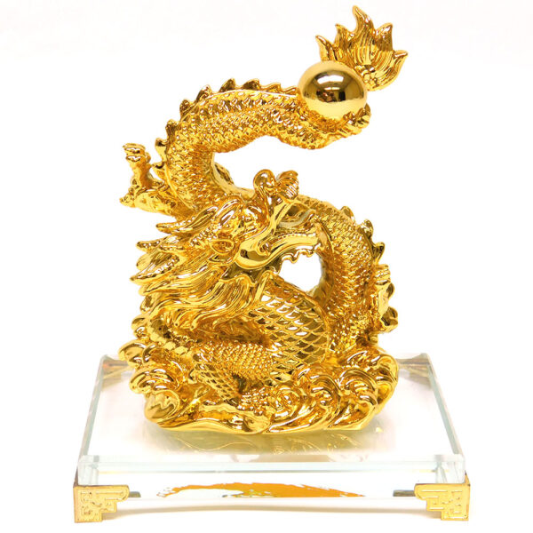 Description: 6″ X 3.5″ X 4.75″ GOLD DRAGON ON CRYSTAL BASE