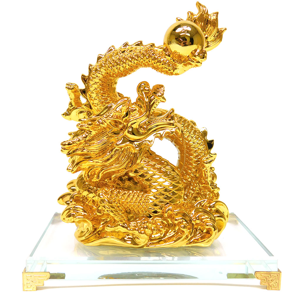 Description: 8″ X 5″ X 6.5″ GOLD DRAGON ON CRYSTAL BASE