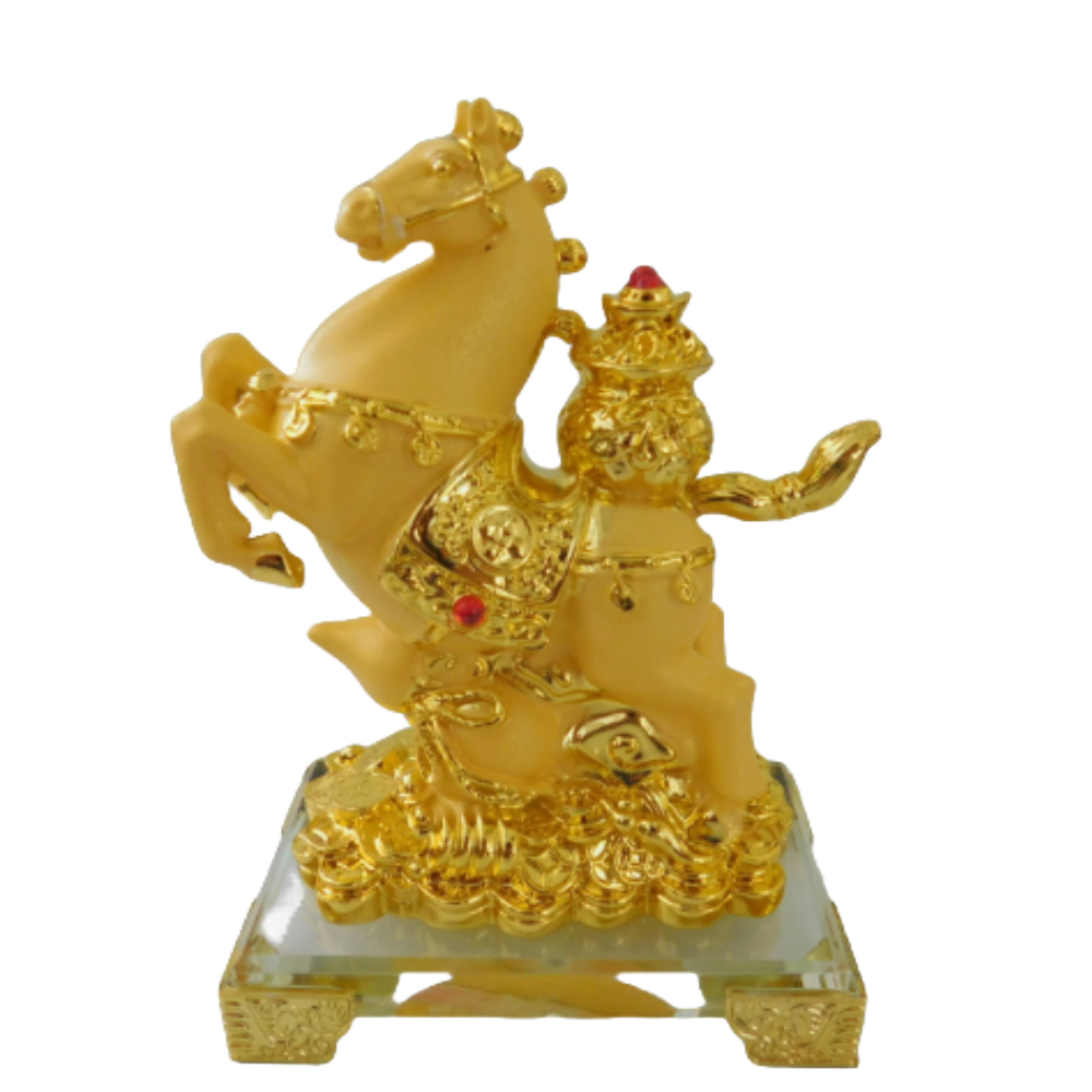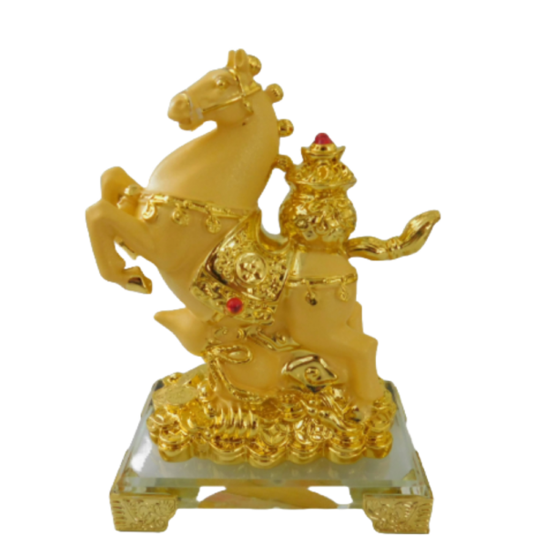 6″ x 4″ x 2.5″ GOLD HORSE ON CRYSTAL BASE W/ TEASURE POT ON BACK