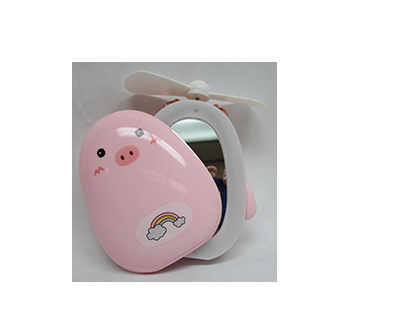 Description: 4.25″ X 3.5″ X 1.5″ MINI FAN W/LIGHT & MIRROR PIG