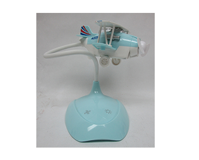 Description: APPROX. 9″ X 4.5″ X 5″ FAN W/3 LIGHT SETTINGS AIRPLANE BLUE