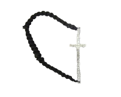 Description: CRYSTAL DIAMOND SILVER CROSS W/BLACK STRING