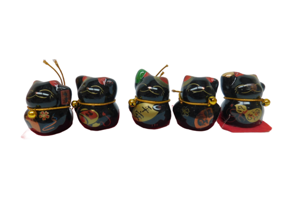 Description: 1.75″X1″X1.75″ BLACK 5PCS LUCKY CAT FIGURINE