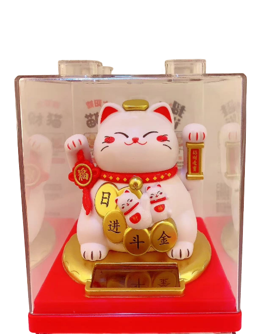 Description: 3.75″ X 3.25″ X 3.25″ SOLAR WHITE LUCKY CAT W/ 2 SMALL CATS
