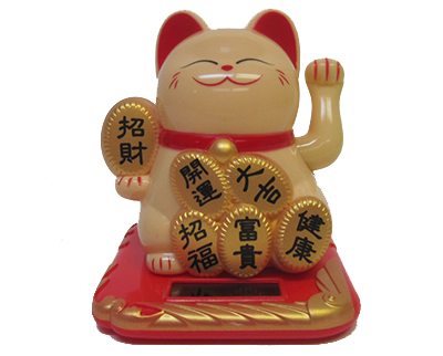 Description: 3.75″ X 3.75″ X 3.25″ YELLOW SOLAR WAVING LUCKY CAT