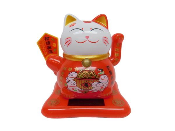 Description: 4″ x 4″ x 4″ SOLAR LUCKY CAT RED
