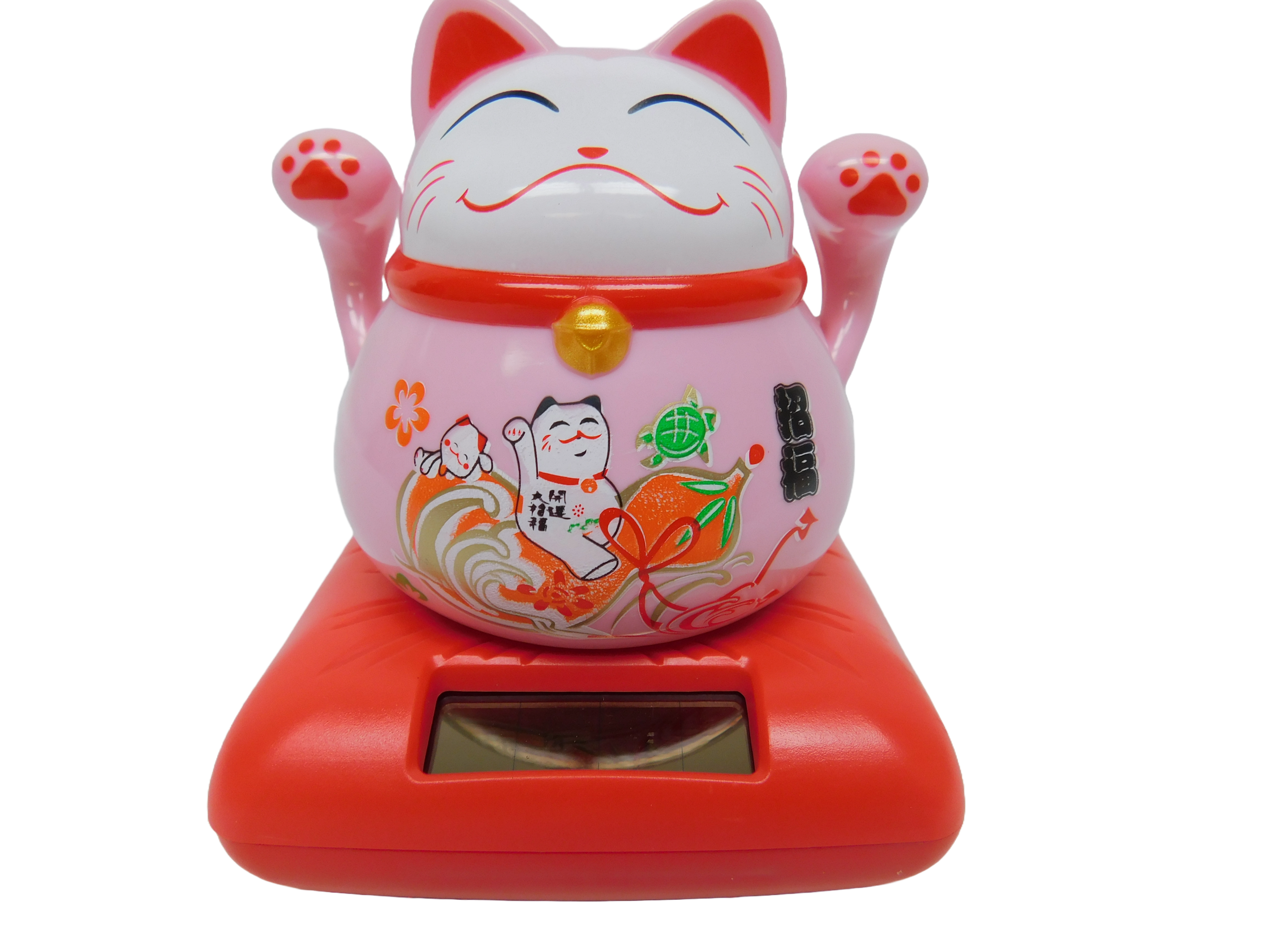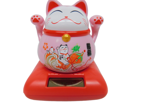 4″ x 4″ x 4″ SOLAR LUCKY CAT PINK (2 WAVING ARMS)