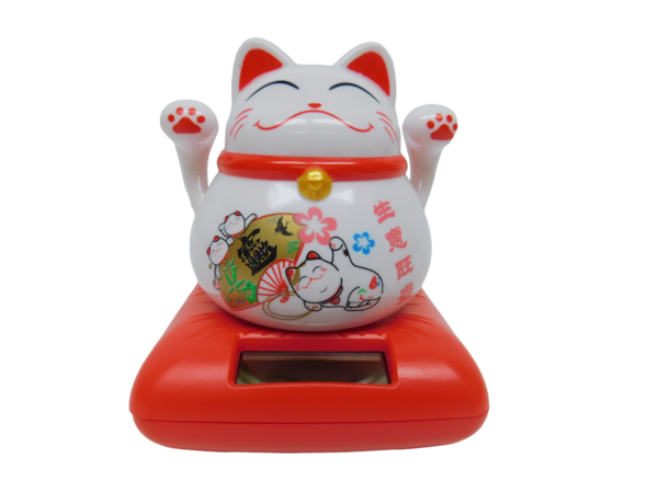 4″ x 4″ x 4″ SOLAR LUCKY CAT WHITE W/ FANS AND CATS