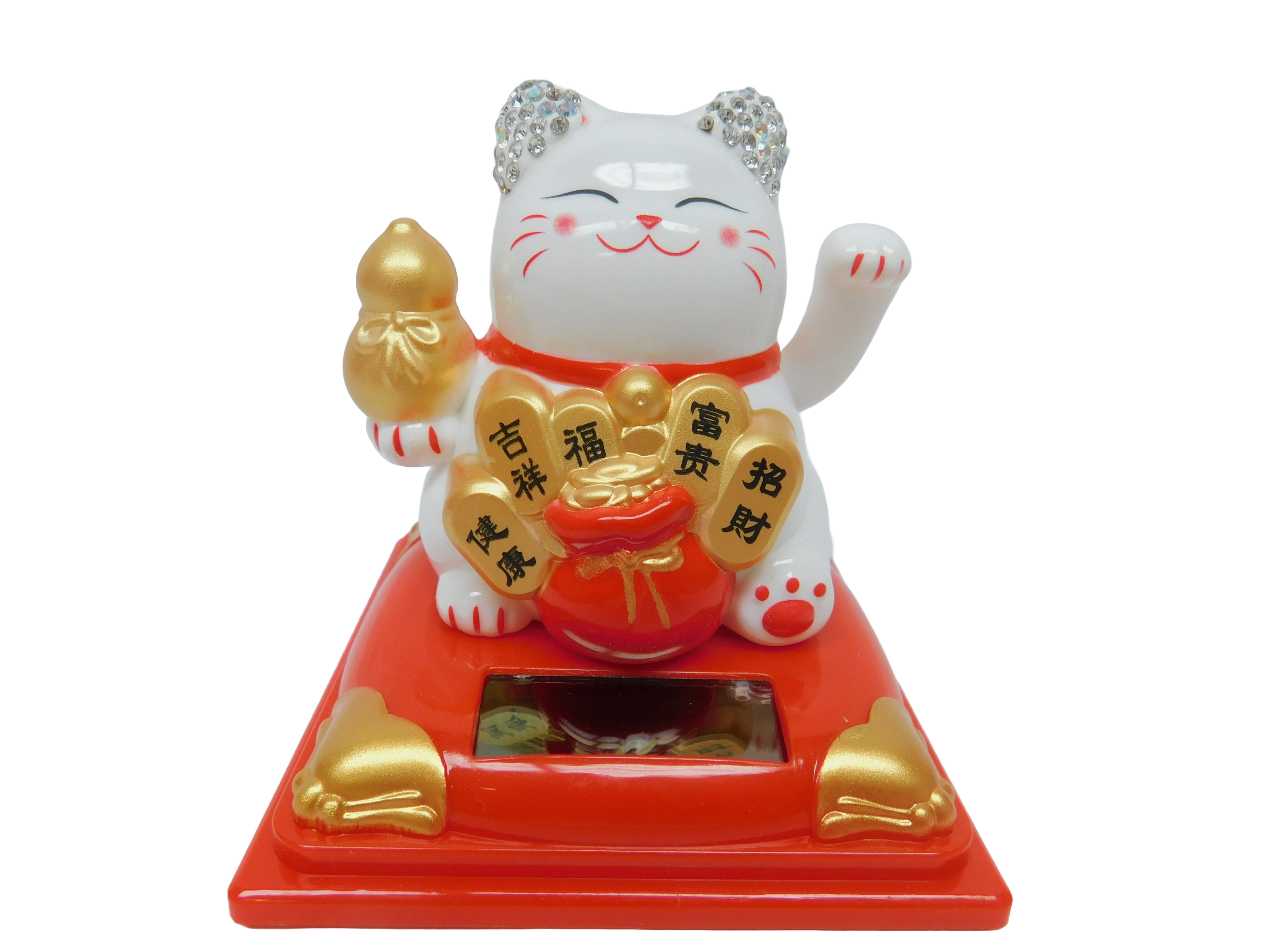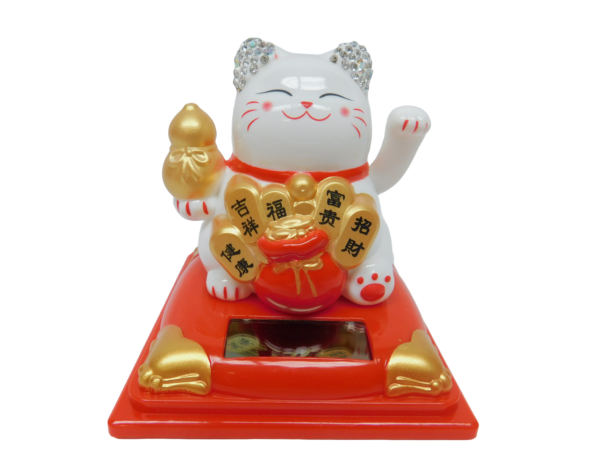 Description: 4″ x 4″ x 4″ SOLAR WHITE CAT W/ RHINESTONES AND HULU