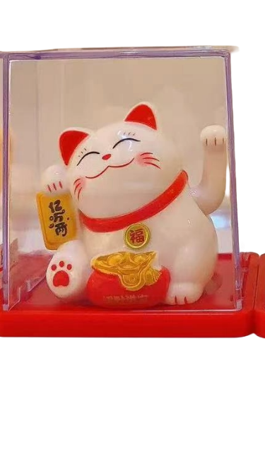 Description: 2.25″ X 3″ X 3″ WHITE LUKCY CAT W/ MONEY BAG SOLAR