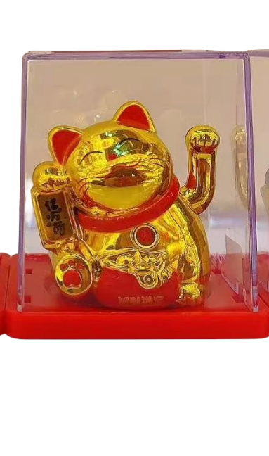 Description: 2.25″ X 3″ X 3″ GOLD LUKCY CAT W/ MONEY BAG SOLAR