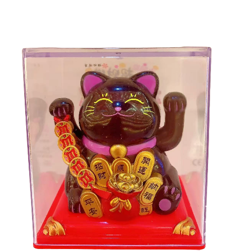 2.5″ x 2″ x 2.25″ BLACK LUCKY CAT W/ MONEY BAG SOLAR