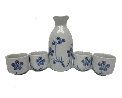 5PC BLUE FLOWER SAKE SET