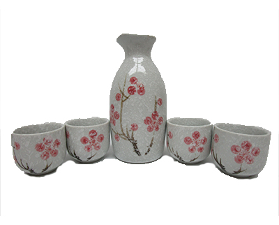 Description: 5PC CERAMIC RED FLOWER SAKE SET