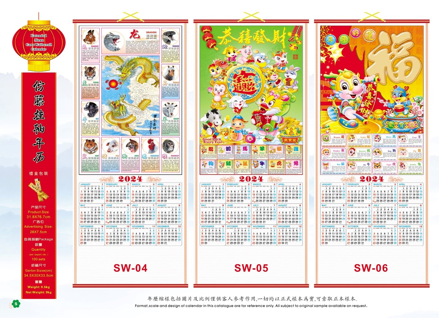 14.75″ X 13.5″ 2024 SCROLL CALENDAR DRAGON