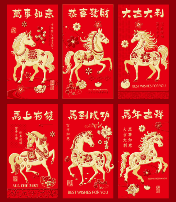 3.5″ X 6.75″ GOLD HORSE RED ENVELOPES LARGE CHINESE