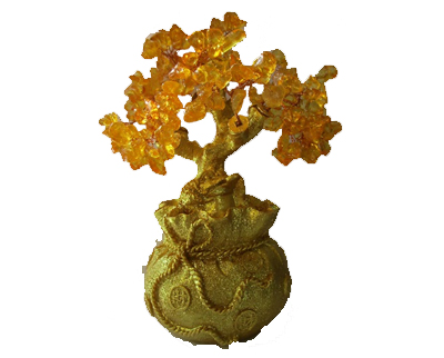 Description: 7″ X 4″ X 4″ YELLOW GEM TREE W/GOLD MONEY BAG BASE