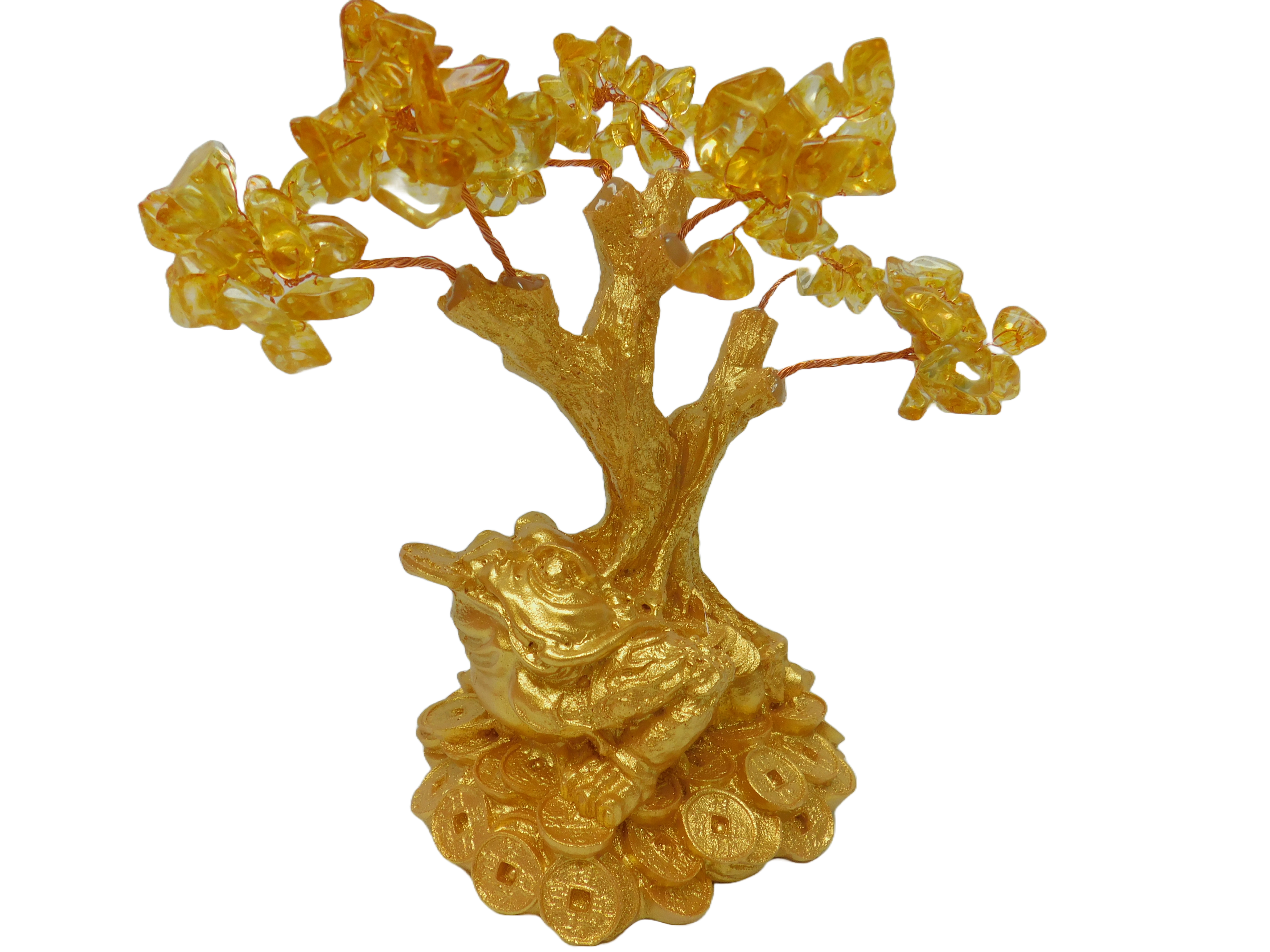 7″ x 4″ x 5″ GOLD CITRINE MONEY TREE W/ GOLD MONEY TOAD BASE BOGO (BUY ONE GET ONE)