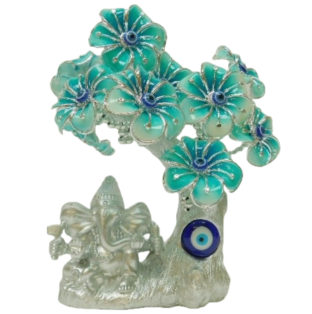 7.5″ X 5.5″ X 3″ SILVER TREE W/BLUE FLOWERS & GANESH