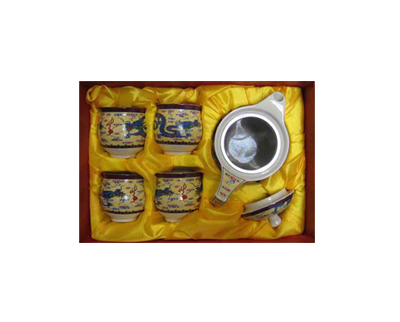 Description: 5PCS TEASETS,YELLOW W/BLUE DRAGON