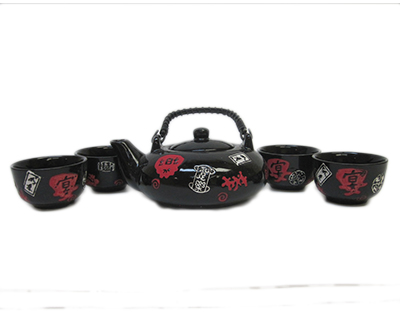 Description: 7PC WHITE TEA SET W/BLUE BUTTERFLIES
