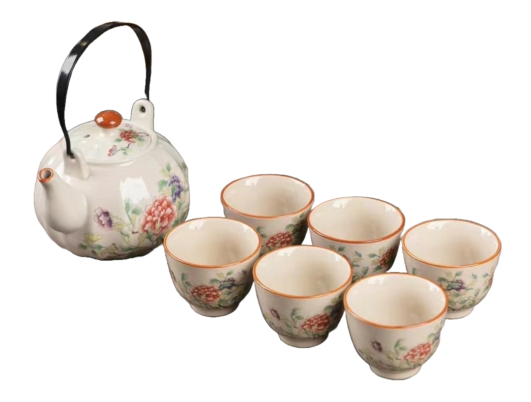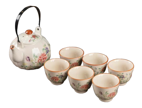 BLUE FLOWER TEA SET W/ 6 CUPS