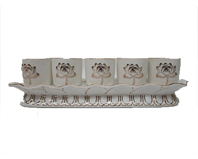 2.75″ X 10.25″ X 2.5″ 5 WHITE CERAMIC WORSHIP CUP SET W/TRAY