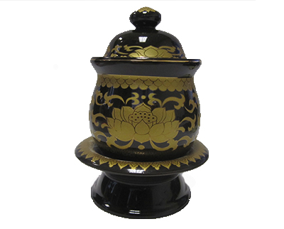 Description: 5″ X 3.5″ X 3.5″ BLACK WORSHIP CUP W/GOLD LOTUS