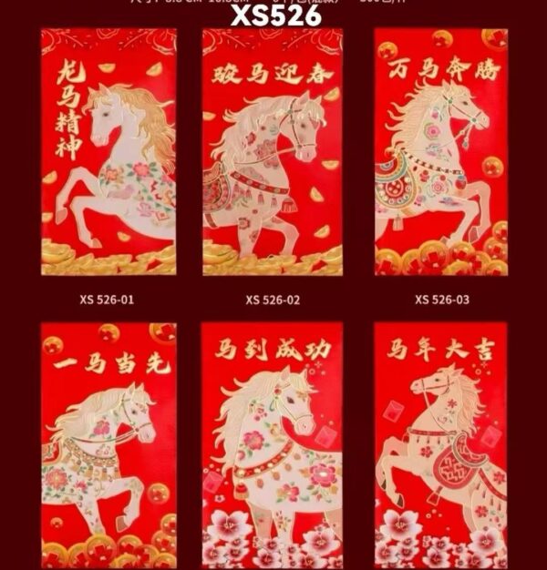 3.5″ X 6.75″ GOLD HORSE RED ENVELOPES LARGE CHINESE