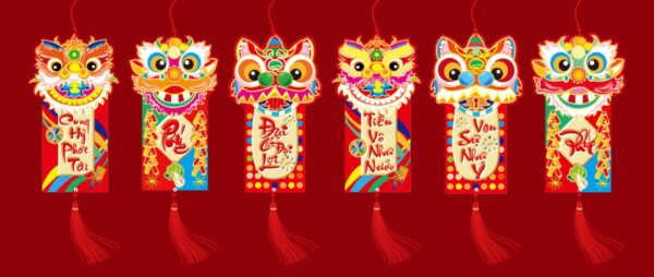 Description: ASSORTED DANCING LION RED HANGING DECORATION (VIETNAMESE)