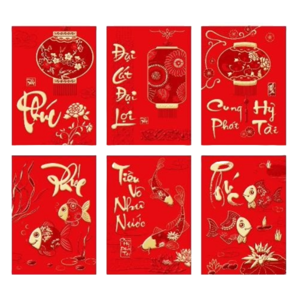 3.25″ X 4.5″ ASSORTED RED ENVELOPES FISH & LANTERN (VIETNAMESE)